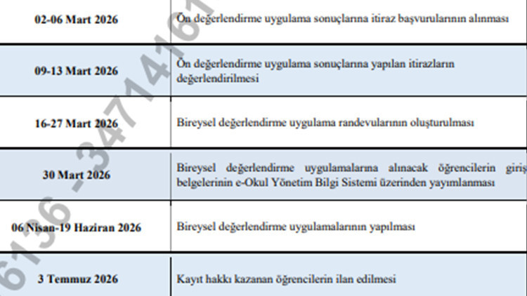 Ön değerlendirme uygulamaları tamamlandıktan sonra Bakanlık tarafından belirlenecek puanları geçen öğrenciler yetenek alanlarına göre bireyseldeğerlendirme uygulamalarına alınacak.