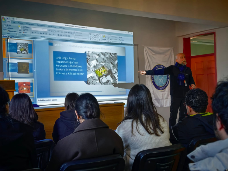 Sunumda İznik’in tarihi, kültürel ve turistik değerleri ele alınırken, hem oda üyelerine hem de öğrencilere yönelik bilgilendirmelerde bulunulurken, eğitim programı daha sonra İznik ilçe merkezinde yer alan tarihi ve kültürel noktaların gezilmesiyle devam etti. Gün boyu süren eğitim turunun ardından rehber grubu Orhangazi’de akşam yemeğinde bir araya gelerek, programı Bursa dönüşle noktaladı.