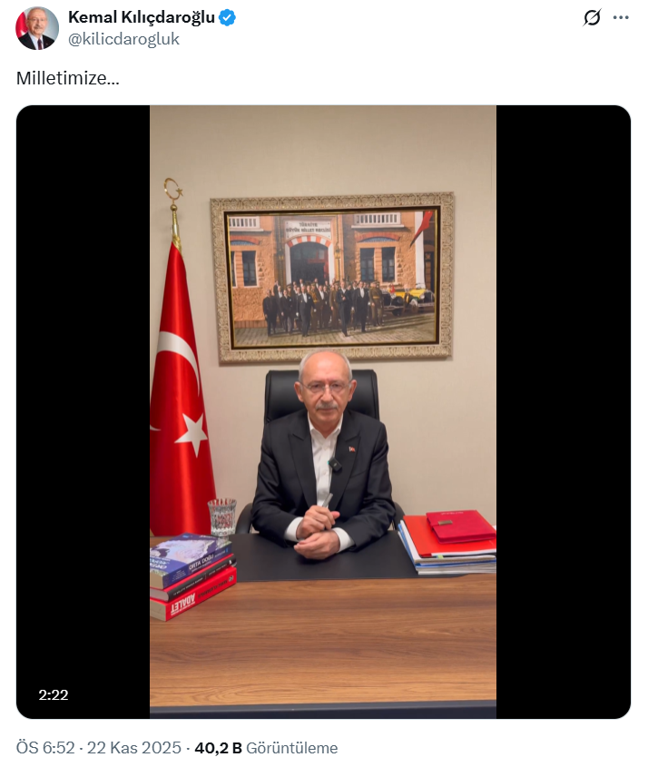 — Kemal Kılıçdaroğlu (@kilicdarogluk) November 22, 2025