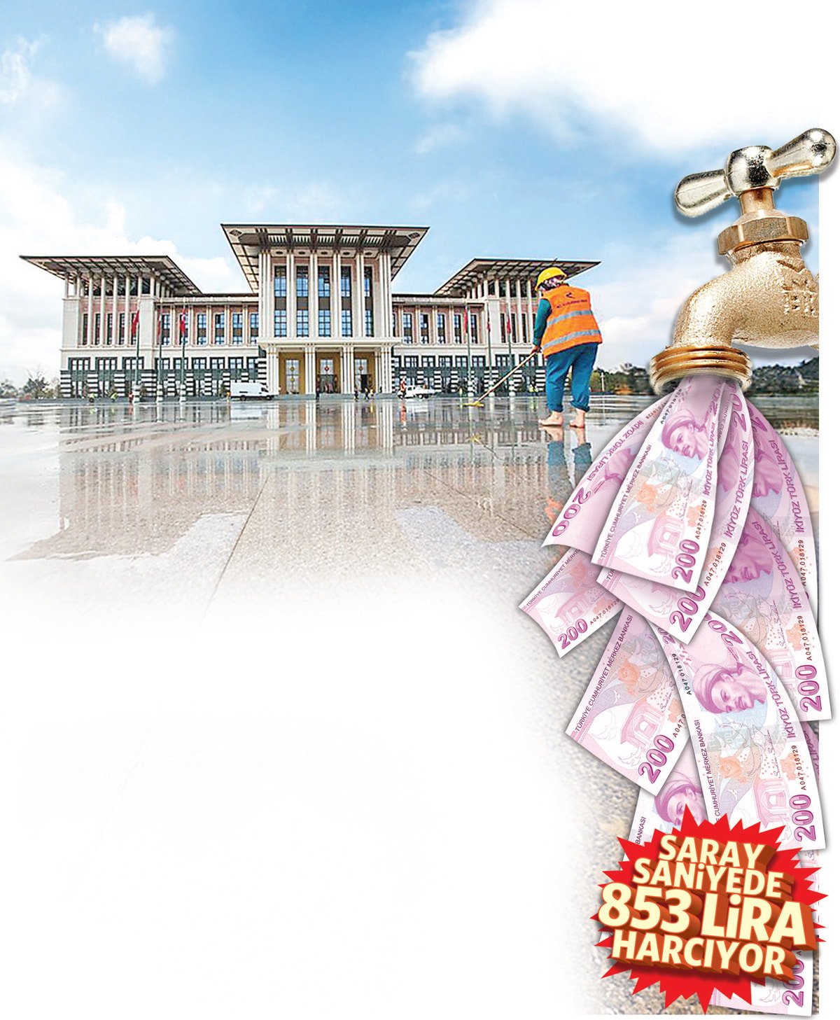 Cumhurbaşkanlığı Sarayı’nın günlük, haftalık ve aylık harcamasına ilişkin yapılan hesaplamalardan sonra, ekim ayındaki 2 milyar 285 milyon liralık masrafı dakika ve saniye olarak da incelendi. Buna göre, milyonların kuruş hesabı yaparak geçim savaşı verdiği ülkede, saray saniyede 853 lira akıtıyor.
