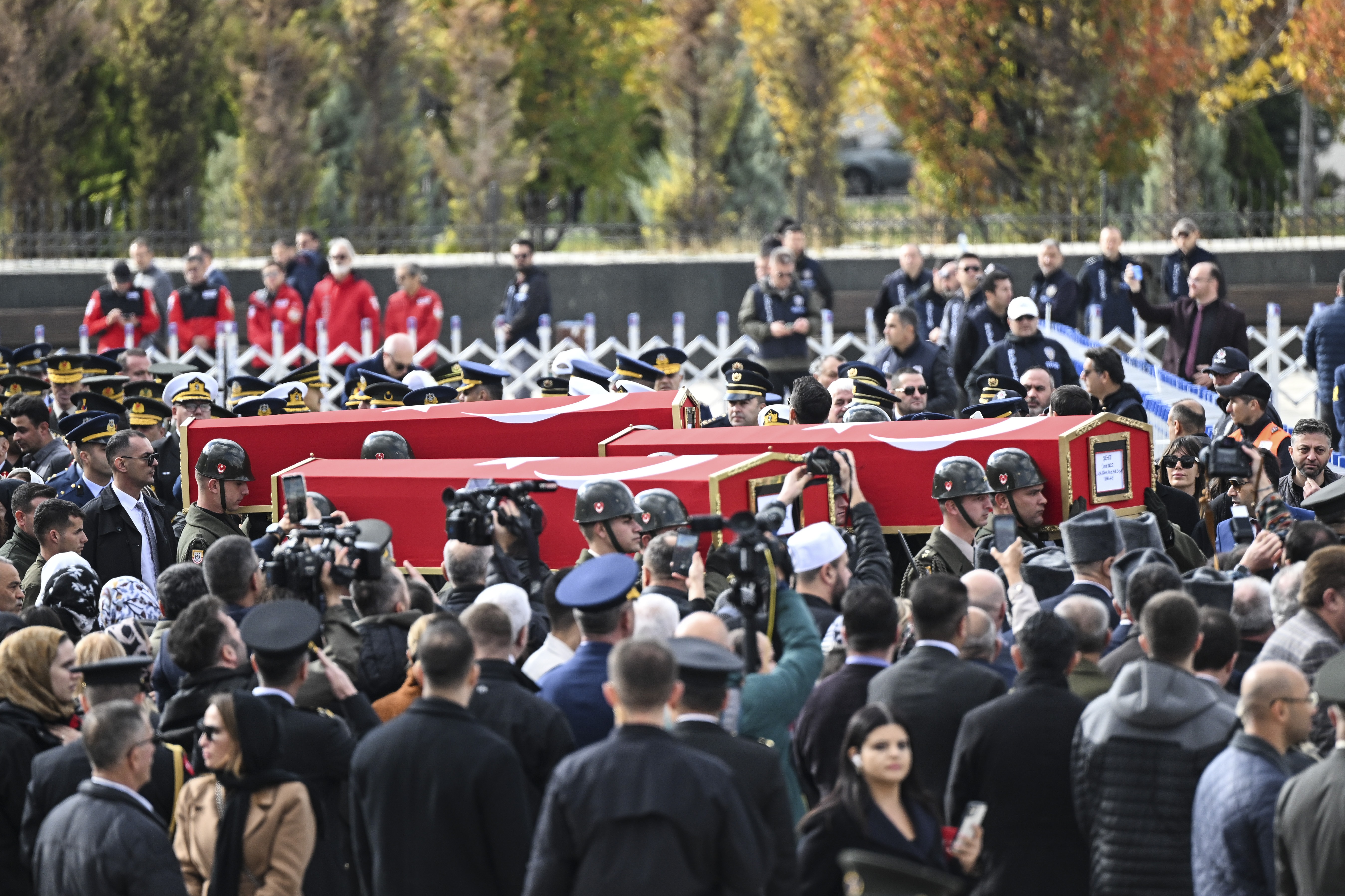 3 şehidin cenazesi daha sonra Ahmet Hamdi Akseki Camisi’ne getirildi. Burada şehitler için tören düzenlendi. Törene TBMM Başkanı Numan Kurtulmuş, Cumhurbaşkanı Yardımcısı Cevdet Yılmaz, MHP Genel Başkanı Devlet Bahçeli, Milli Savunma Bakanı Yaşar Güler, Hazine ve Maliye Bakanı Mehmet Şimşek, Tarım ve Orman Bakanı İbrahim Yumaklı, Dışişleri Bakanı Hakan Fidan, İYİ Parti Genel Başkanı Müsavat Dervişoğlu, Büyük Birlik Partisi Genel Başkanı Mustafa Destici, Ankara Valisi Vasip Şahin ve çok sayıda vatandaş katıldı.