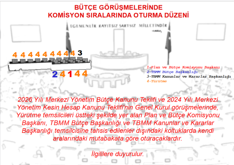 ANKARA (İGFA) – Türkiye Büyük Millet Meclisi Genel Kurulu, 2026 Yılı Merkezi Yönetim Bütçe Kanunu ve 2024 Yılı Kesin Hesap Kanunu görüşmeleri BUGÜN saat 12.00’de başlıyor.