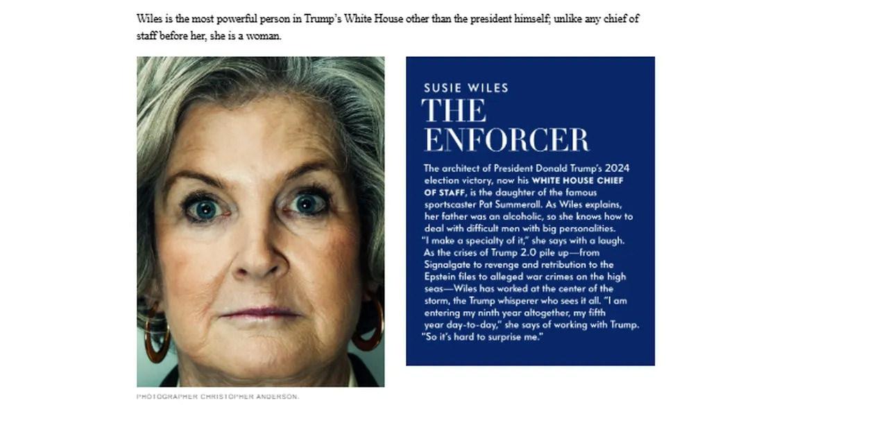 Amerikan Vanity Fair dergisinde yayımlanan Susie Wiles röportajı, hem ülke genelinde hem de Washington’da geniş yankı uyandırdı. Dergide yer alan ifadelere göre Wiles, Trump kabinesindeki bazı isimlere yönelik eleştirilerde bulunurken, aynı zamanda Trump yönetiminin başarılarından da övgüyle söz etti.